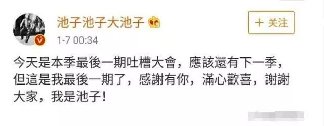 作为《吐槽大会》的灵魂人物,池子19年年初宣布退出《吐槽大会》的时候,许多网友对此表示十分惋惜。