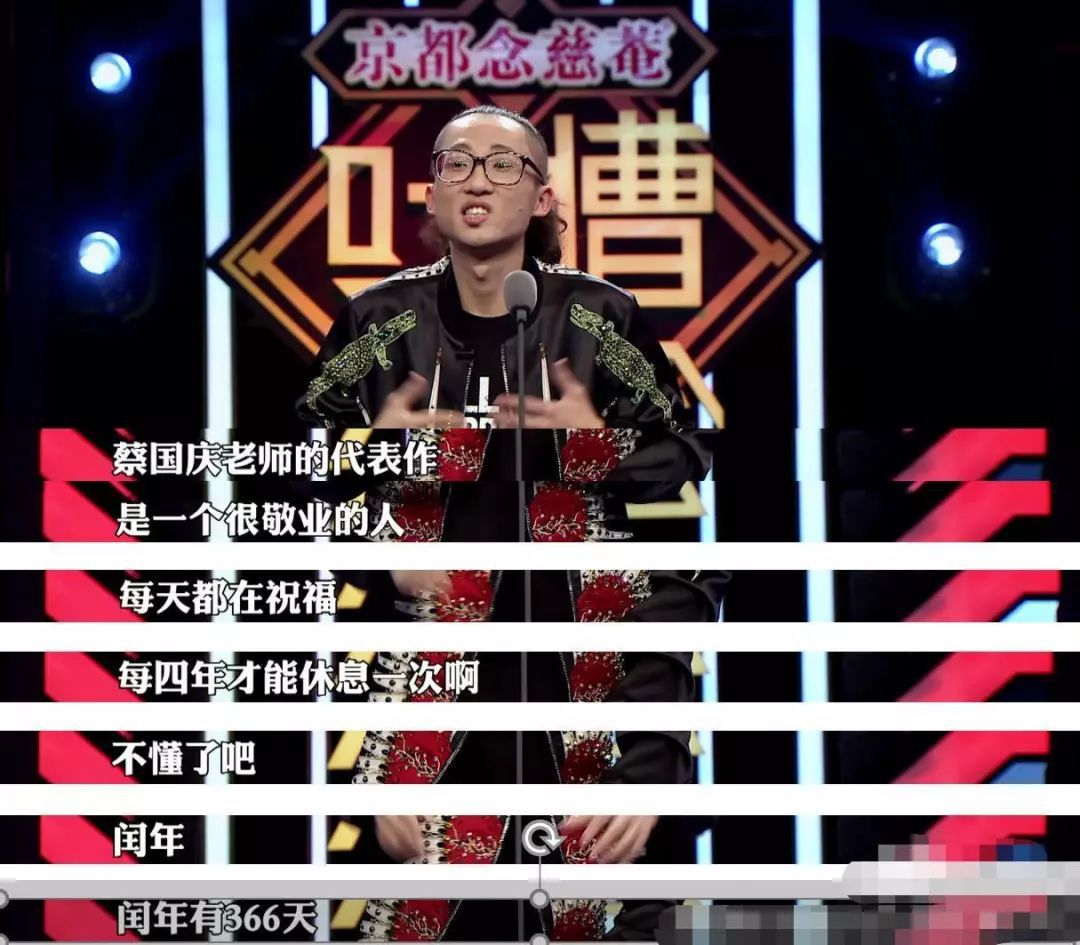 池子在节目中玩梗,表示蔡国庆老师代表作为《365个祝福》,天天有祝福,四年一次休息,因为闰年有366天。