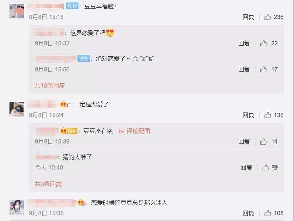 再加上此前豆得儿在8月底发的这段文字,似乎是在佐证她确实处于恋爱状态当中。