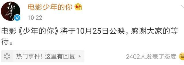 《少年的你》这部电影在上映的时候,经历了很多的波折。原本定在2019年6月27日的时候上映,但是出于一些原因,所以没有上映。