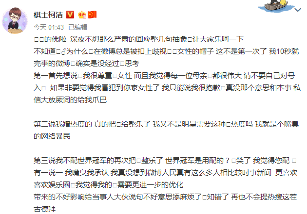关于奚梦瑶产子一事,丈夫何猷君多次提及自己的儿子是赌王何鸿燊的长孙,爸爸把他自己的名字送给长孙来继承。所以,儿子很荣幸地叫何广燊。耿直的柯洁对于这一表述直接表达了不满,“长孙这种话都喊出来了,简直是太有骨气了。”