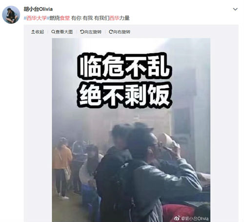 @AngelNana小太阳:上一次上热搜还是王力宏来了,这一次是因为二食堂着火了(记者 但唐文)