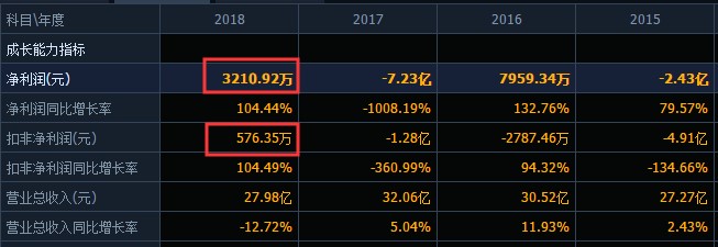2018年年报显示,獐子岛2018年全年营收27.98亿元,其中净利润只有3211万元,同比增长104.44%,实现扭亏为盈。但实际上,2018年獐子岛收到的政府补助金额就达到了3044万元,同比增长幅度达到了319.13%,也就是说公司全年净利94%都是来自于政府补助,实际上獐子岛全年扣非净利只有576万元。