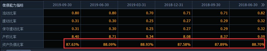 梳理历史财务数据看,獐子岛目前的负债率高居不下,财报显示,今年三季度獐子岛的资产负债率高达87.63%。据悉,这已经是獐子岛连续8个季度负债率超过85%了。