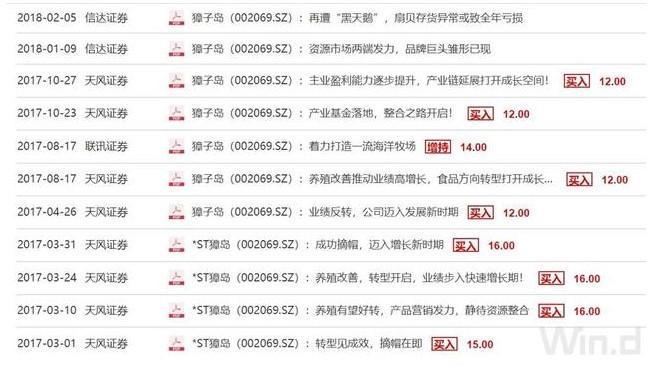 Wind数据显示,关于獐子岛的最新研报是2018年2月,题为《獐子岛:再遭“黑天鹅”,扇贝存货异常或致全年亏损》,彼时正值獐子岛扇贝又一次出事。此后,再无券商研报跟踪獐子岛。