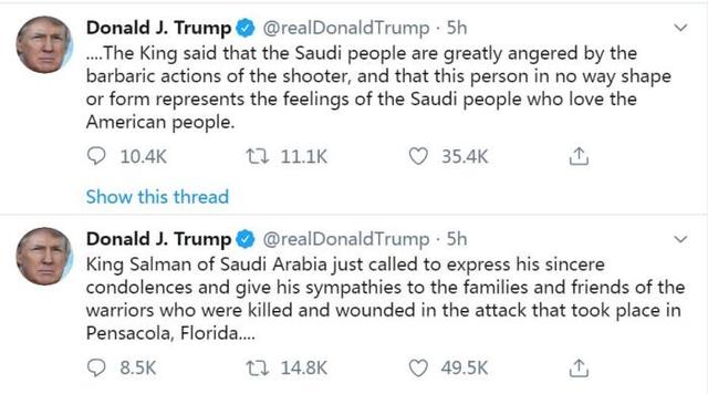 美国总统特朗普拒绝透露枪击案是否涉,他在社交网站“推特”上向遇难者家属表示慰问,并称他已经收到沙特国王萨勒曼的来电。