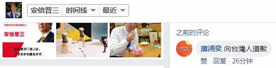 岛内网友到安倍晋三的社交网络账号要求道歉(Facebook截图)