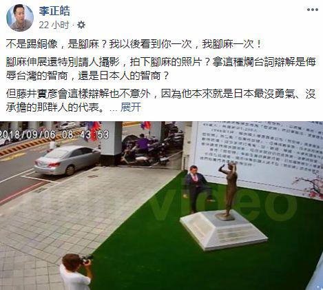 李正皓质疑藤井为什么腿麻让人帮忙照相(Facebook截图)