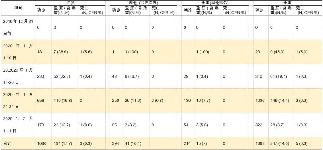 | 2020年2月1-11日 | 12030 (26.9) | 102 (10.0) | 0.8 | 87799 | 0.012 |
