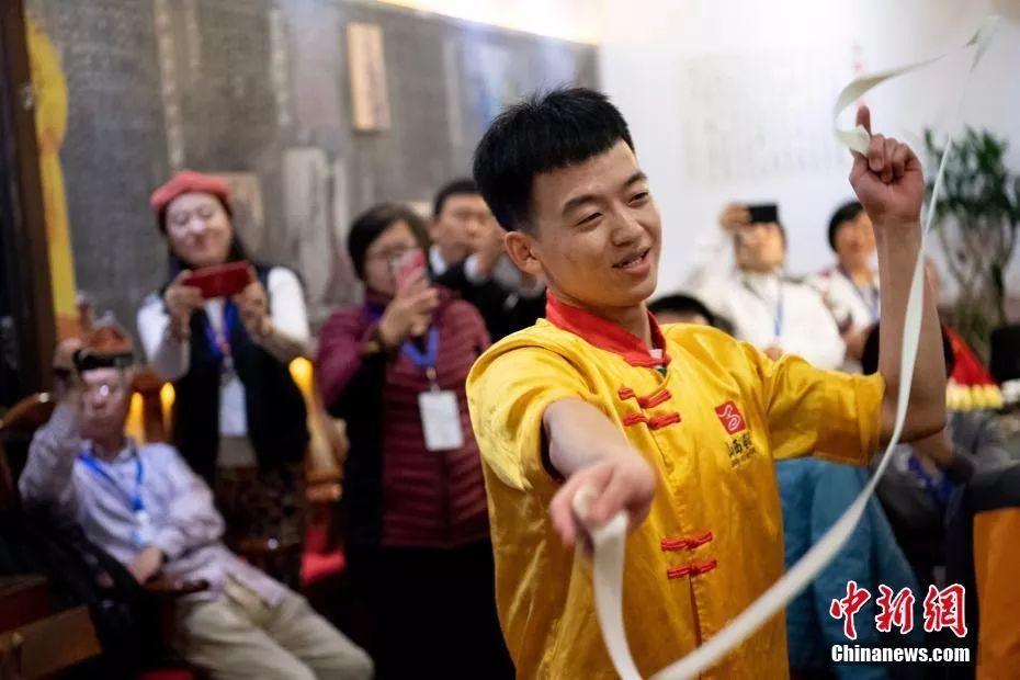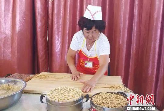 来自世界各地的华文媒体代表参观山西面食制作工艺。中新社记者 韦亮 摄