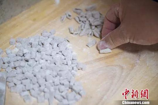 内蒙古呼和浩特,莜麦磨制的面粉用手搓成的莜面鱼鱼。 尚虹波 摄