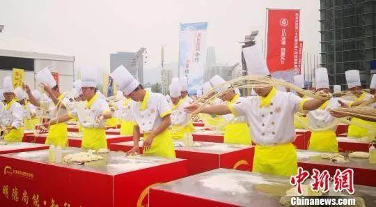 7月3日,第25届“兰洽会”陇上美食博览会在兰州开幕,图为现场拉面表演。 周孔 摄