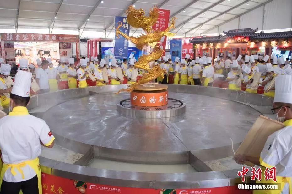 山西面食文化节的“世界第一锅”刀削面。中新社记者 韦亮 摄