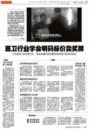 京华时报讯(记者张然)前晚,央视曝光了“中华医院管理学会”违规举办评比表彰活动,明码标价卖奖牌的情况。昨天,国家卫生计生委发表声明称,“中华医院管理学会”并非卫计委主管的社会组织,该委也与此协会不存在指导关系。其所颁奖项也是违规、无效的。