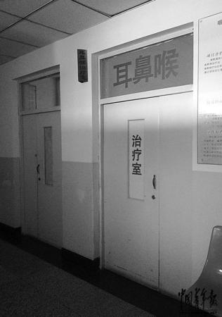 记者在现场看到,二层的耳鼻喉科大门关闭,且上了锁,门上的玻璃窗已用白纸遮挡。